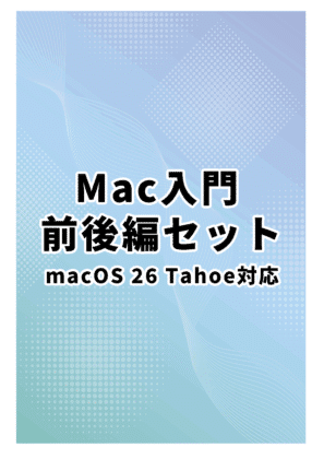 2025年11月最新のmacOS 26 Tahoe対応テキストの前後編セットです。Mac入門の前編では、Macの基本的な使い方を学びます。トラックパッドの使い方、アプリの起動と終了、デスクトップやFinder、ウィンドウの基本操作、ファイルの作成と管理などを学習します。後編ではSafariを使ったインターネットでの基本操作、そのほかのアプリの紹介とアプリの基本的な使い方(カレンダー)、アプリのダウンロードと削除、システム環境設定の使い方などを学習します。